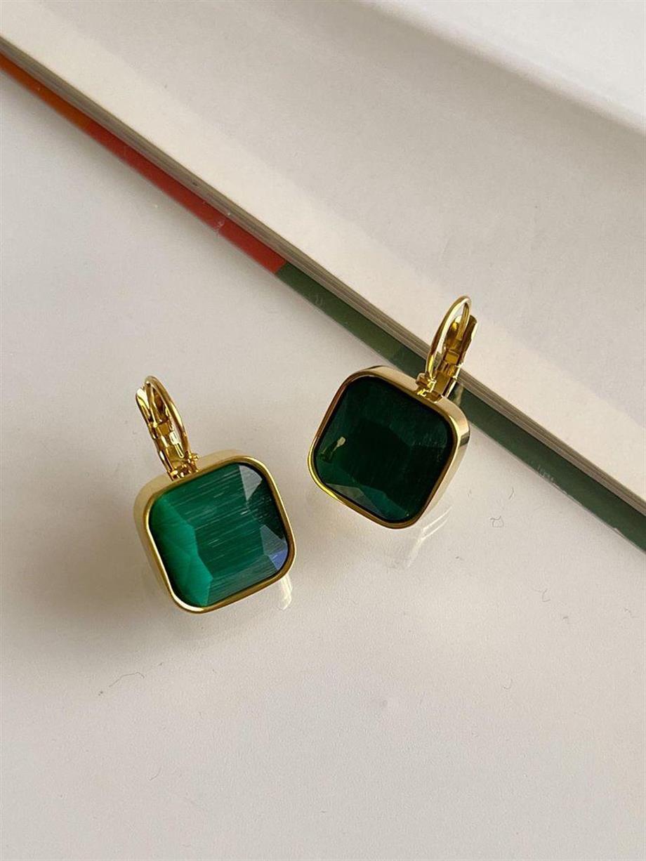 Çelik Yeşil Taşlı Küpe (2 Cm)